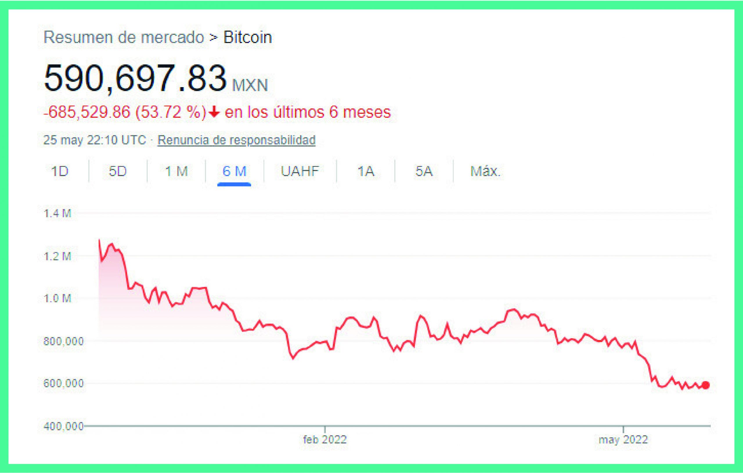 Durante los últimos 6 meses, tras alcanzar su máximo histórico, Bitcoin ha tenido una caída estrepitosa del -53.67%